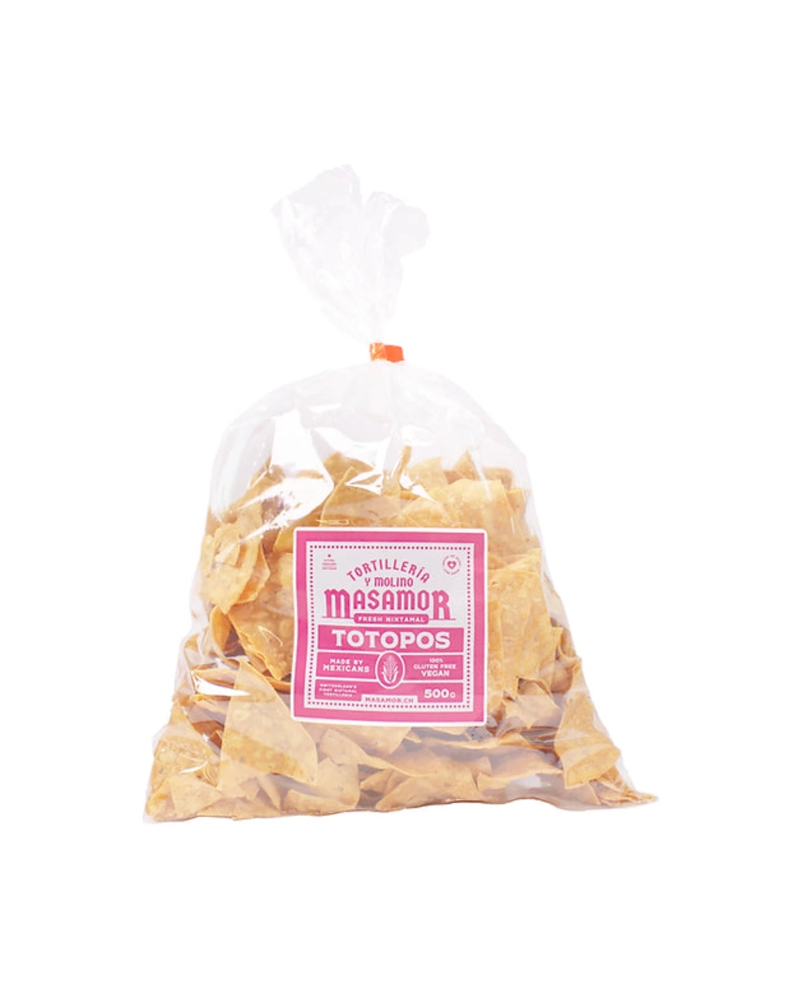 Totopos werden hergestellt, indem Maistortillas in Dreiecke geschnitten und dann knusprig gebraten oder gebacken werden. Nachos hingegen werden häufig aus Maistortillas in Form von Quadraten oder größeren Dreiecken hergestellt, die knusprig gebraten und dann in kleinere Formen geschnitten werden können.